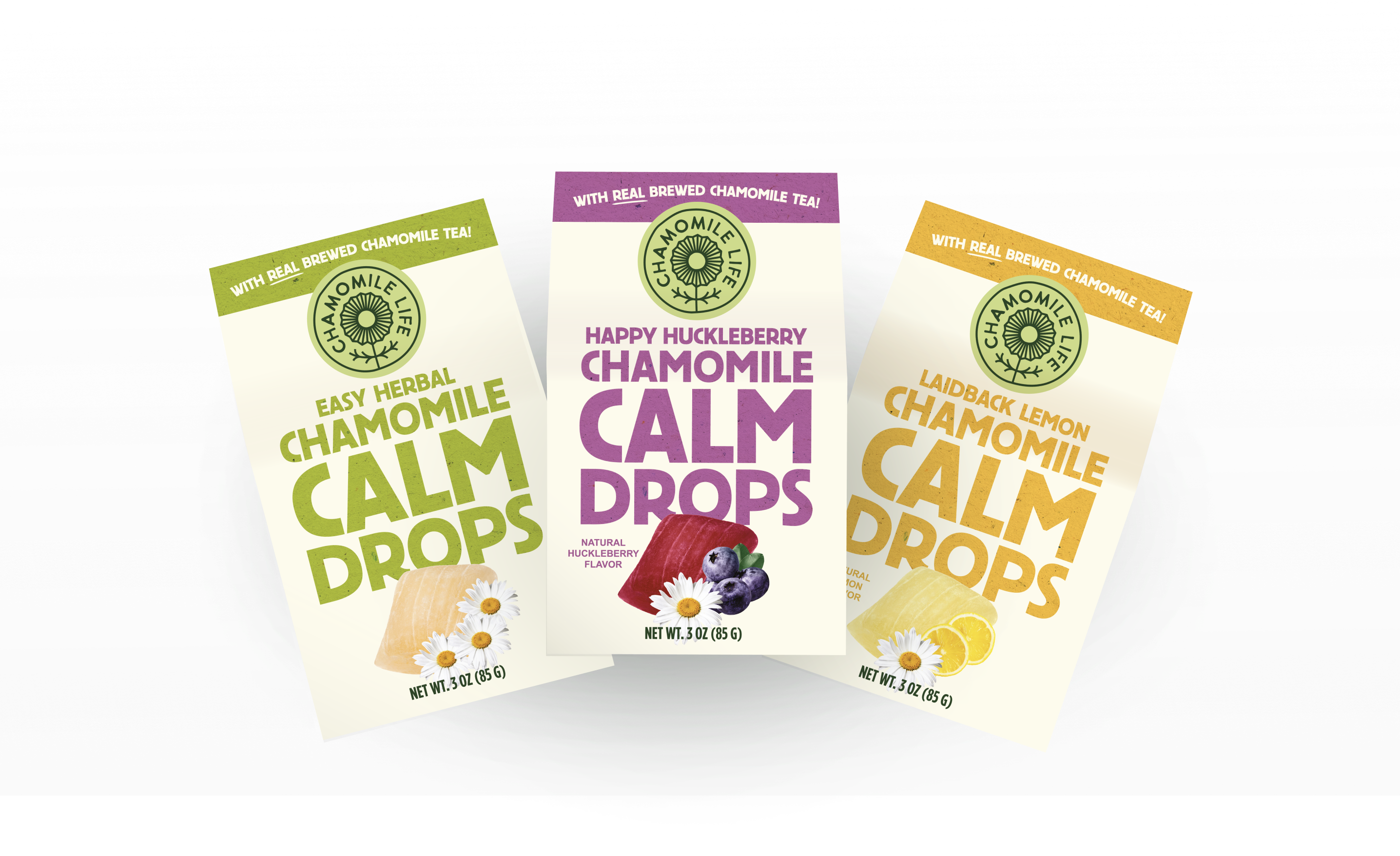 The only low calorie hard candy made with real brewed chamomile tea that is scientifically-backed to relieve anxiety and stress. Available in 3 flavors - Easy Herbal, Happy Huckleberry, and Laidback Lemon. Restore yourself with a bit of sweetness, and live the Chamomile Life.