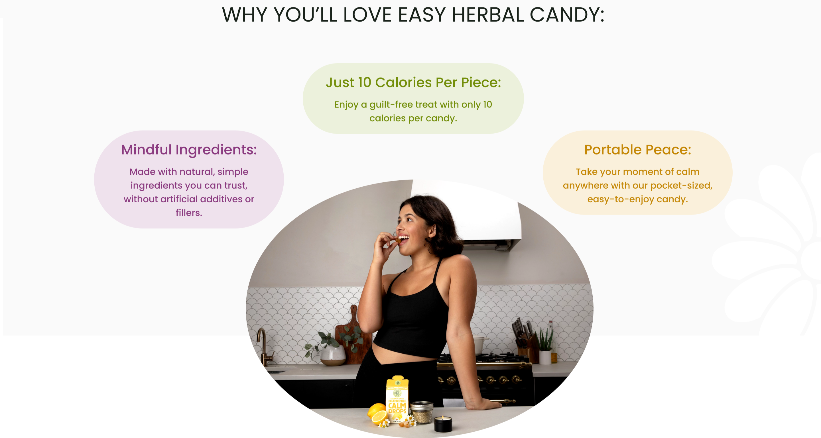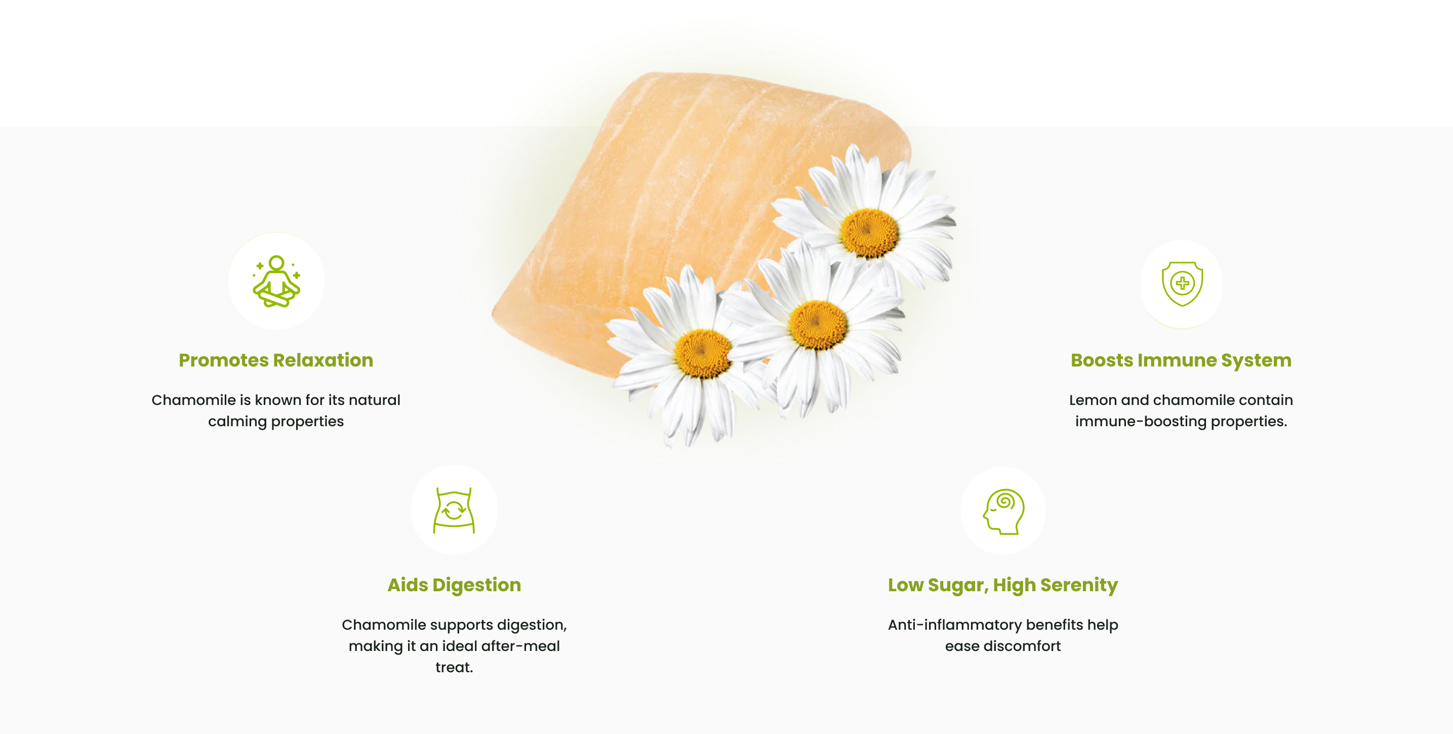 More than just a treat, Chamomile Life candies are carefully crafted with real chamomile to deliver functional benefits, including: