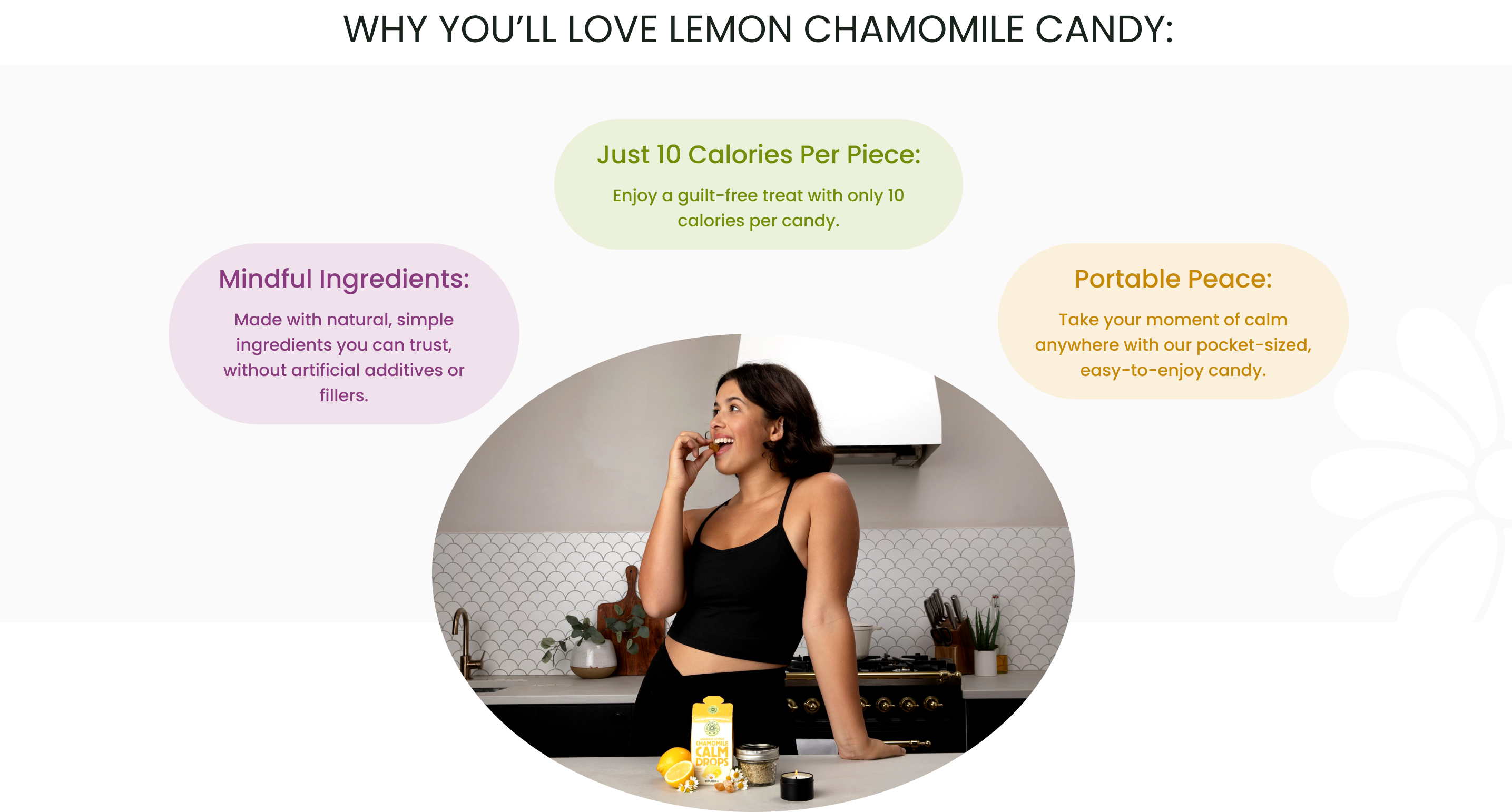 More than just a treat, Chamomile Life candies are carefully crafted with real chamomile to deliver functional benefits, including: